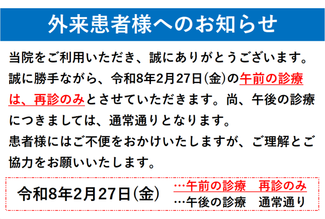 外来患者様へのお知らせ